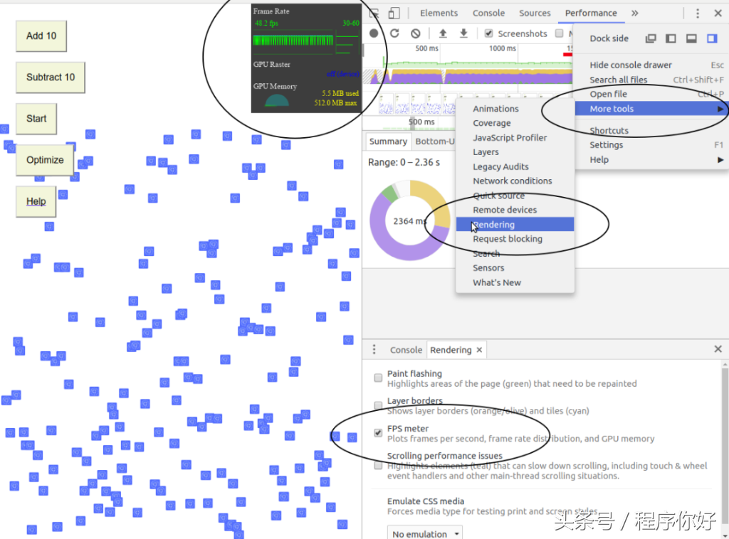 一旦您理解了代码级别性能问题的原因,您就可以应用不同的JavaScript技术来解决瓶颈,例如使用requestAnimationFrame()或使用HTML5 Web worker在自己的线程中执行操作。