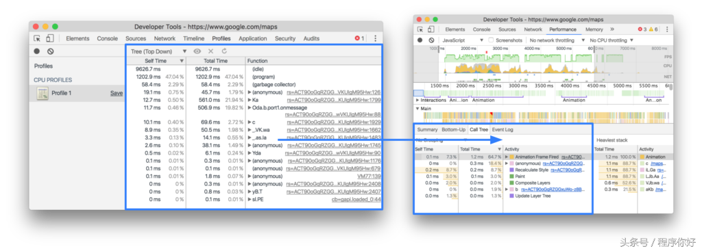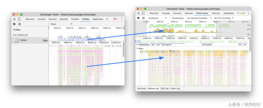 值得一提的是,Chrome的性能面板是新的。它结合了旧的时间线和JavaScript CPU Profiler,它仍然存在,但是隐藏在更多的工具中——在它将从未来版本的Chrome中移除之前。