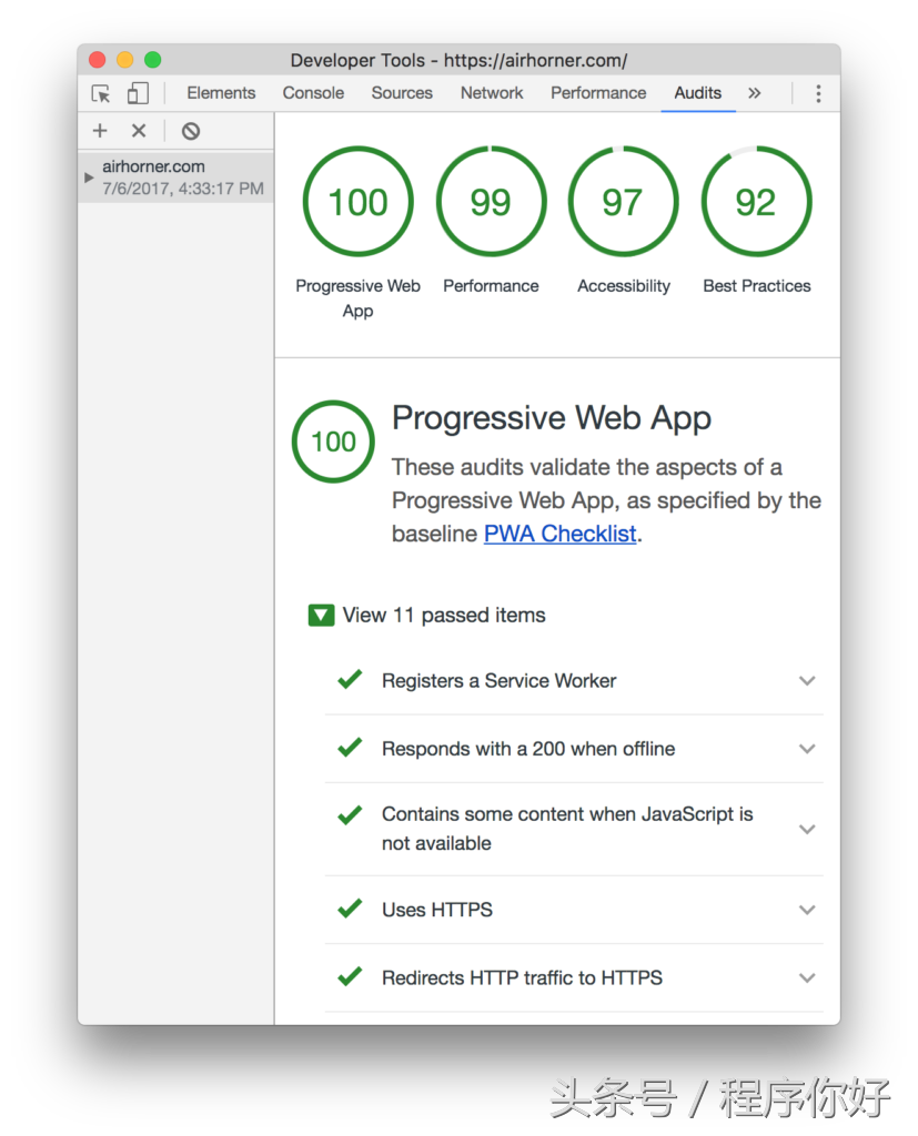 渐进式Web应用程序:运行审核以测试页面是否符合渐进式Web应用程序的标准