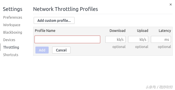 性能选项卡允许您在分析应用程序以模拟不同的网络条件时控制网络。