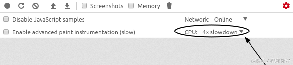 CPU节流允许您模拟移动设备的慢CPU能力,以便您能够准确地测试web页面在移动设备中的性能。