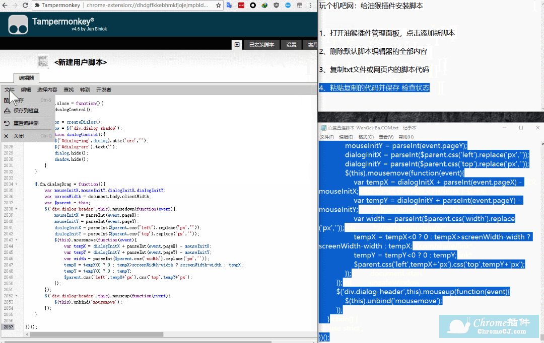 一些第三方修改版,通常可以直接点击上面的下载,会自动安装,原版Chrome,打开扩展页,将上面下载的JS脚本拖动到浏览器中进行安装,如下: