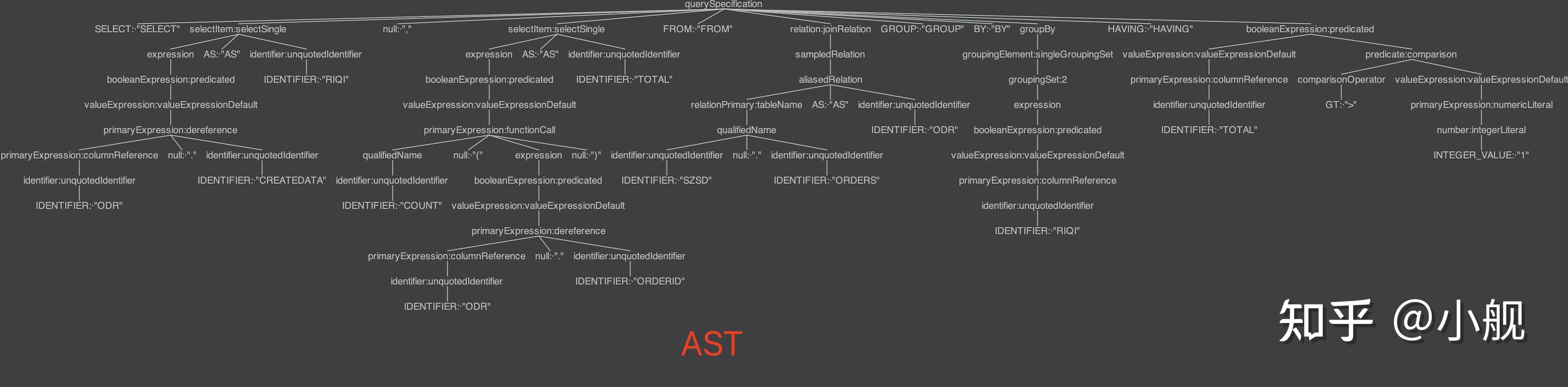 <pre style="padding: 0.88889em;max-width: 100%;overflow-wrap: normal;font-size: 0.9em;word-break: normal;overflow: auto;background: rgb(246, 246, 246);border-radius: 4px;box-sizing: border-box !important;">{<br style="max-width: 100%;box-sizing: border-box !important;overflow-wrap: break-word !important;" /> "type": "Program", // 程序根节点<br style="max-width: 100%;box-sizing: border-box !important;overflow-wrap: break-word !important;" /> "body": [ // 一个数组包含所有程序的顶层语句<br style="max-width: 100%;box-sizing: border-box !important;overflow-wrap: break-word !important;" /> {<br style="max-width: 100%;box-sizing: border-box !important;overflow-wrap: break-word !important;" /> "type": "IfStatement", // 一个if语句节点<br style="max-width: 100%;box-sizing: border-box !important;overflow-wrap: break-word !important;" /> "test": { // if语句的判断条件<br style="max-width: 100%;box-sizing: border-box !important;overflow-wrap: break-word !important;" /> "type": "BinaryExpression", // 一个双元运算表达式节点<br style="max-width: 100%;box-sizing: border-box !important;overflow-wrap: break-word !important;" /> "operator": ">", // 运算表达式的运算符<br style="max-width: 100%;box-sizing: border-box !important;overflow-wrap: break-word !important;" /> "left": { // 运算符左侧值<br style="max-width: 100%;box-sizing: border-box !important;overflow-wrap: break-word !important;" /> "type": "Literal", // 一个常量表达式<br style="max-width: 100%;box-sizing: border-box !important;overflow-wrap: break-word !important;" /> "value": 1 // 常量表达式的常量值<br style="max-width: 100%;box-sizing: border-box !important;overflow-wrap: break-word !important;" /> },<br style="max-width: 100%;box-sizing: border-box !important;overflow-wrap: break-word !important;" /> "right": { // 运算符右侧值<br style="max-width: 100%;box-sizing: border-box !important;overflow-wrap: break-word !important;" /> "type": "Literal",<br style="max-width: 100%;box-sizing: border-box !important;overflow-wrap: break-word !important;" /> "value": 0<br style="max-width: 100%;box-sizing: border-box !important;overflow-wrap: break-word !important;" /> }<br style="max-width: 100%;box-sizing: border-box !important;overflow-wrap: break-word !important;" /> },<br style="max-width: 100%;box-sizing: border-box !important;overflow-wrap: break-word !important;" /> "consequent": { // if语句条件满足时的执行内容<br style="max-width: 100%;box-sizing: border-box !important;overflow-wrap: break-word !important;" /> "type": "BlockStatement", // 用{}包围的代码块<br style="max-width: 100%;box-sizing: border-box !important;overflow-wrap: break-word !important;" /> "body": [ // 代码块内的语句数组<br style="max-width: 100%;box-sizing: border-box !important;overflow-wrap: break-word !important;" /> {<br style="max-width: 100%;box-sizing: border-box !important;overflow-wrap: break-word !important;" /> "type": "ExpressionStatement", // 一个表达式语句节点<br style="max-width: 100%;box-sizing: border-box !important;overflow-wrap: break-word !important;" /> "expression": {<br style="max-width: 100%;box-sizing: border-box !important;overflow-wrap: break-word !important;" /> "type": "CallExpression", // 一个函数调用表达式节点<br style="max-width: 100%;box-sizing: border-box !important;overflow-wrap: break-word !important;" /> "callee": { // 被调用者<br style="max-width: 100%;box-sizing: border-box !important;overflow-wrap: break-word !important;" /> "type": "Identifier", // 一个标识符表达式节点<br style="max-width: 100%;box-sizing: border-box !important;overflow-wrap: break-word !important;" /> "name": "alert"<br style="max-width: 100%;box-sizing: border-box !important;overflow-wrap: break-word !important;" /> },<br style="max-width: 100%;box-sizing: border-box !important;overflow-wrap: break-word !important;" /> "arguments": [ // 调用参数<br style="max-width: 100%;box-sizing: border-box !important;overflow-wrap: break-word !important;" /> {<br style="max-width: 100%;box-sizing: border-box !important;overflow-wrap: break-word !important;" /> "type": "Literal",<br style="max-width: 100%;box-sizing: border-box !important;overflow-wrap: break-word !important;" /> "value": "hi"<br style="max-width: 100%;box-sizing: border-box !important;overflow-wrap: break-word !important;" /> }<br style="max-width: 100%;box-sizing: border-box !important;overflow-wrap: break-word !important;" /> ]<br style="max-width: 100%;box-sizing: border-box !important;overflow-wrap: break-word !important;" /> }<br style="max-width: 100%;box-sizing: border-box !important;overflow-wrap: break-word !important;" /> }<br style="max-width: 100%;box-sizing: border-box !important;overflow-wrap: break-word !important;" /> ]<br style="max-width: 100%;box-sizing: border-box !important;overflow-wrap: break-word !important;" /> },<br style="max-width: 100%;box-sizing: border-box !important;overflow-wrap: break-word !important;" /> "alternative": null // if语句条件未满足时的执行内容<br style="max-width: 100%;box-sizing: border-box !important;overflow-wrap: break-word !important;" /> }<br style="max-width: 100%;box-sizing: border-box !important;overflow-wrap: break-word !important;" /> ]<br style="max-width: 100%;box-sizing: border-box !important;overflow-wrap: break-word !important;" />}<br style="max-width: 100%;box-sizing: border-box !important;overflow-wrap: break-word !important;" /></pre>