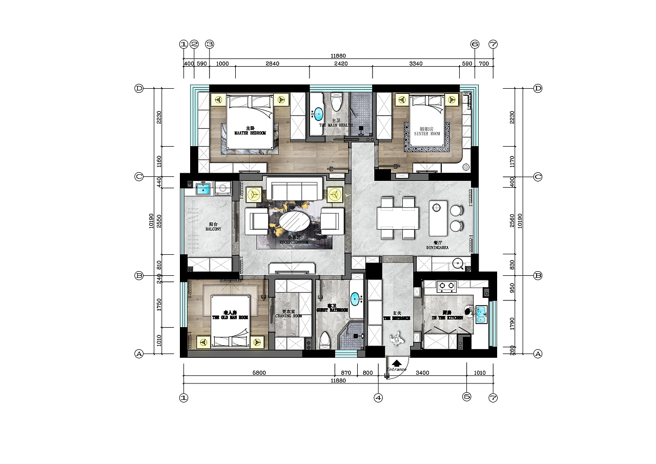 grid 在某些情况下会比 flex 好用。比如说需要突破行的限制,但是只适用于固定布局,如下图的布局,如果不使用grid你会如何实现呢?