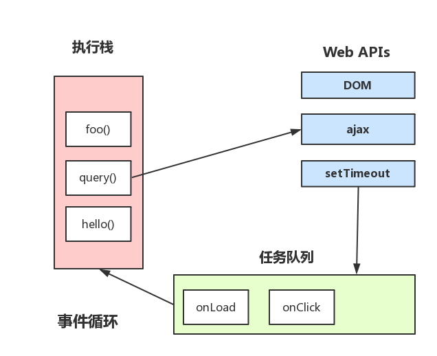 读这部分的前提是已经知道了JS引擎是单线程,而且这里会用到上文中的几个概念:(如果不是很理解,可以回头温习)